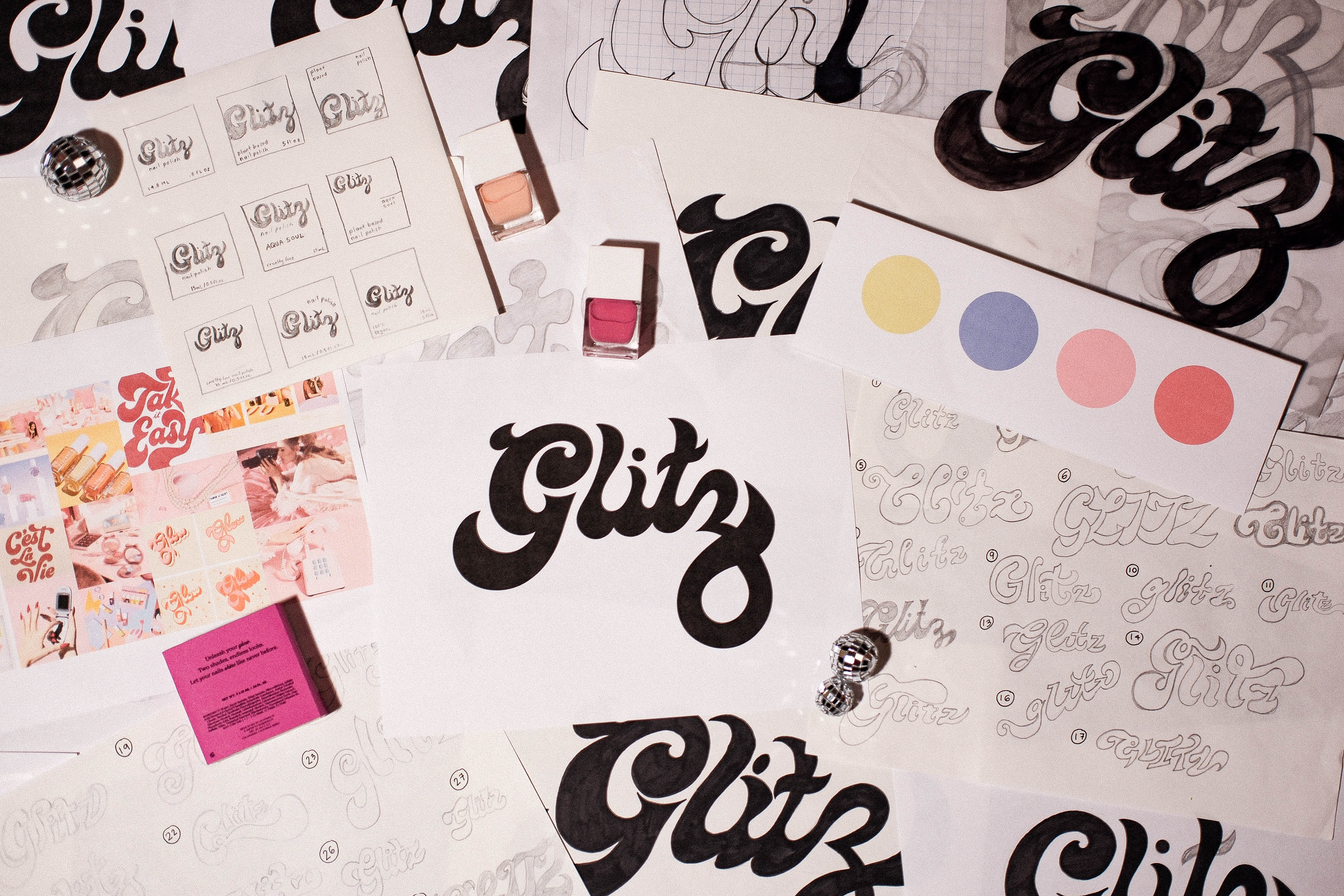 Glitz is a nostalgic nail polish brand inspired by the vibrant spirit of the '70s through the early 2000's. Featuring a custom playful typeface and a warm, retro color palette, Glitz channels a bold, beauty-forward era, where details are fun, fearless, and full of personality.